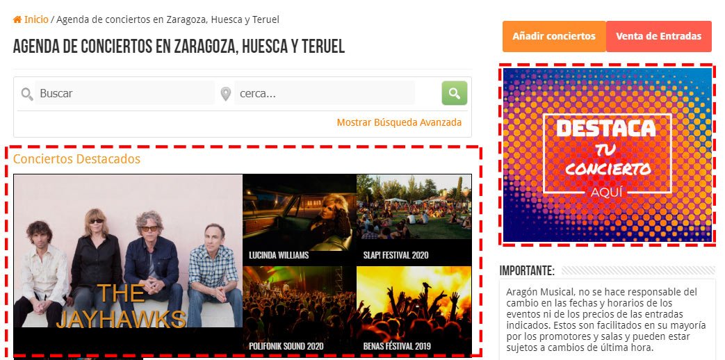 La agenda de conciertos en Aragón más completa. Conciertos masivos y pequeños eventos. Con ciertos de conciertos programados cada mes, destaca el tuyo sin límites, desde 80€