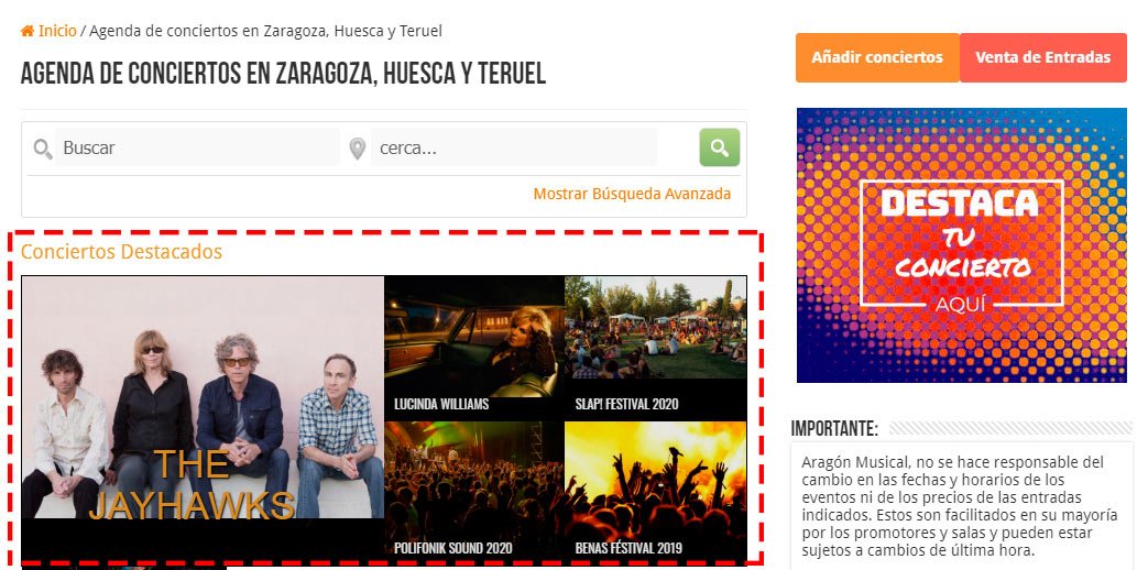 - Por tiempo indefinido hasta la fecha del concierto, de forma aleatoria y visible junto a los 9 últimos conciertos destacados en su fecha anterior.